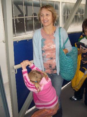 Famous documentary director Sherie and child boarding ship in Halifax.