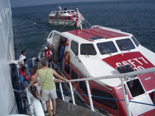 Pam heads towards the Martha's Vineyard tender (aka, lifeboat).
