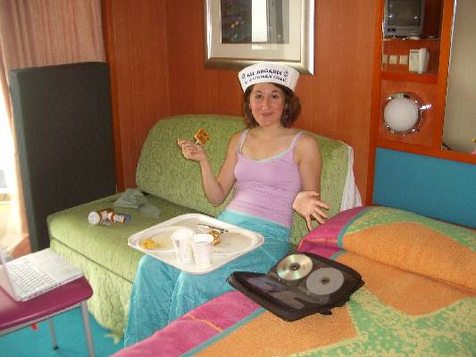 Megan eating breakfast in the room.